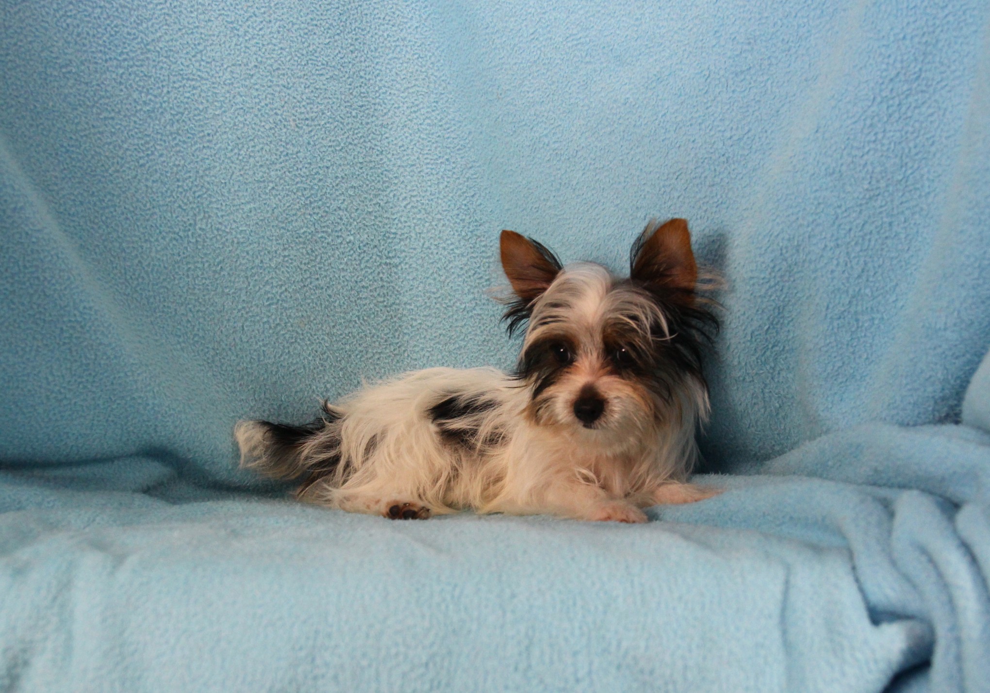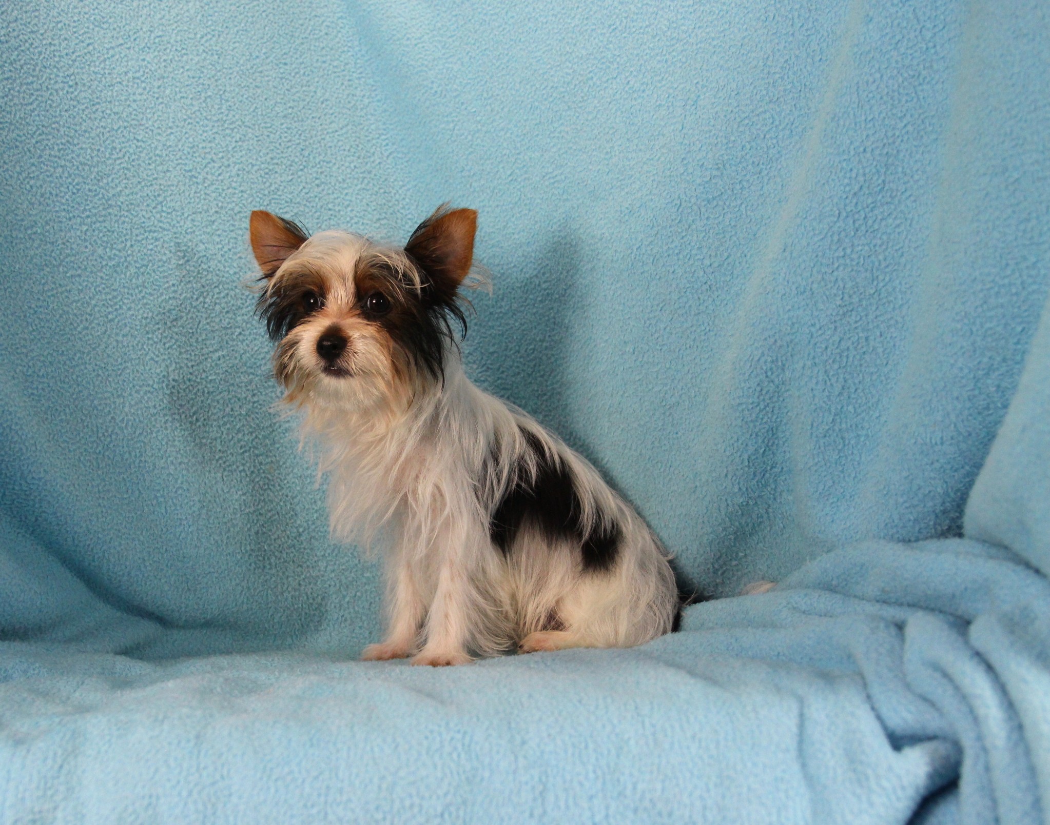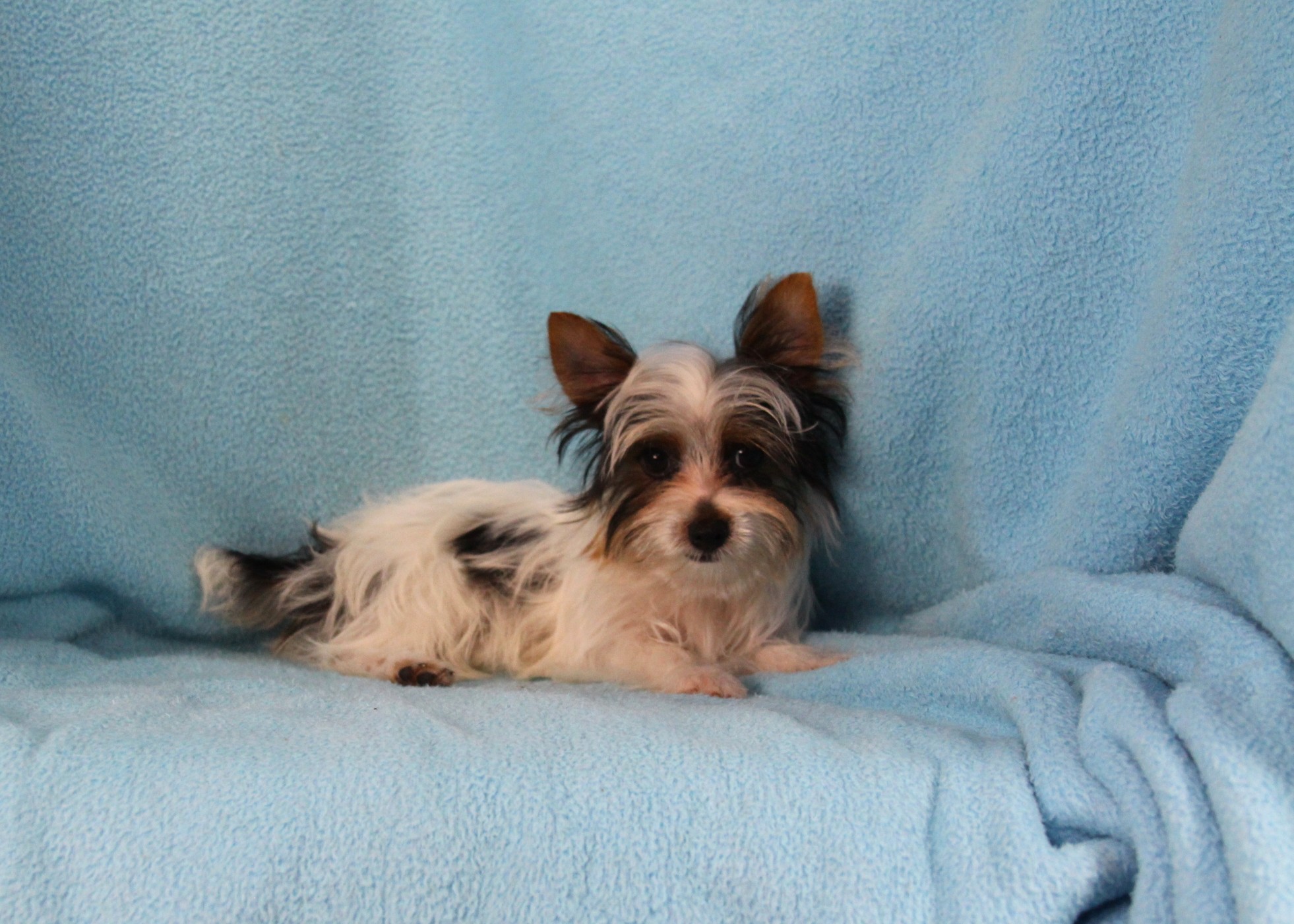 Harley is a playful little teddy bear who is sweet. He has a square body with thick coat and is baby-faced. He is affectionate and loving. He is a Parti Yorkie.  He is Limited Registration, for Full Registration will be $500.00 more. He has been petted & spoiled since day one. He will receive his health check and vaccinations and has been micro-chipped. Plus you will get his very own Puppy Book that has his care instructions, health records, parents pictures and health testing, tips for house training and pictures of him! He has also had Early Neurological Stimulation (ENS) exercises. His passport is ready. He’s going to be an amazing pet for a lucky family.