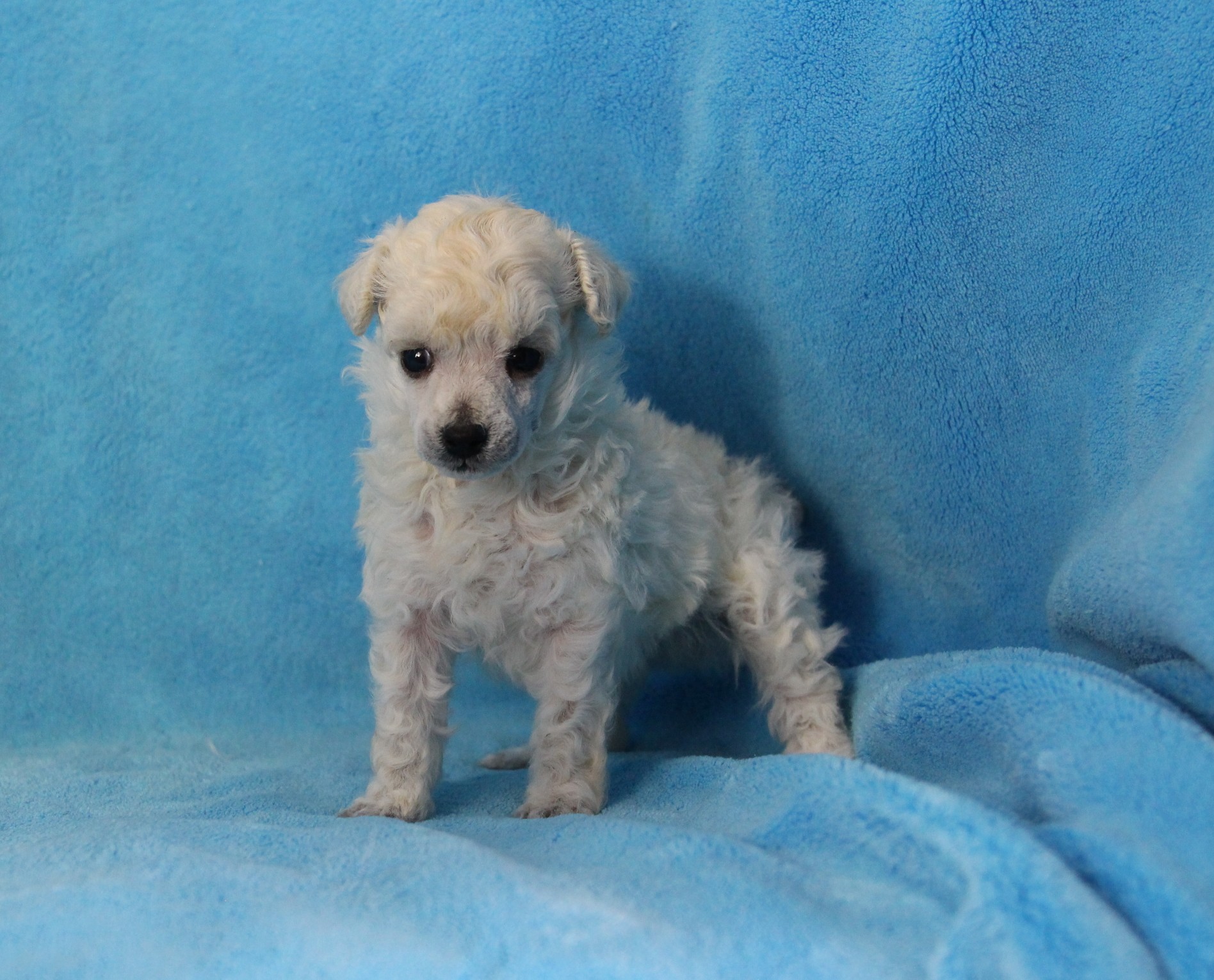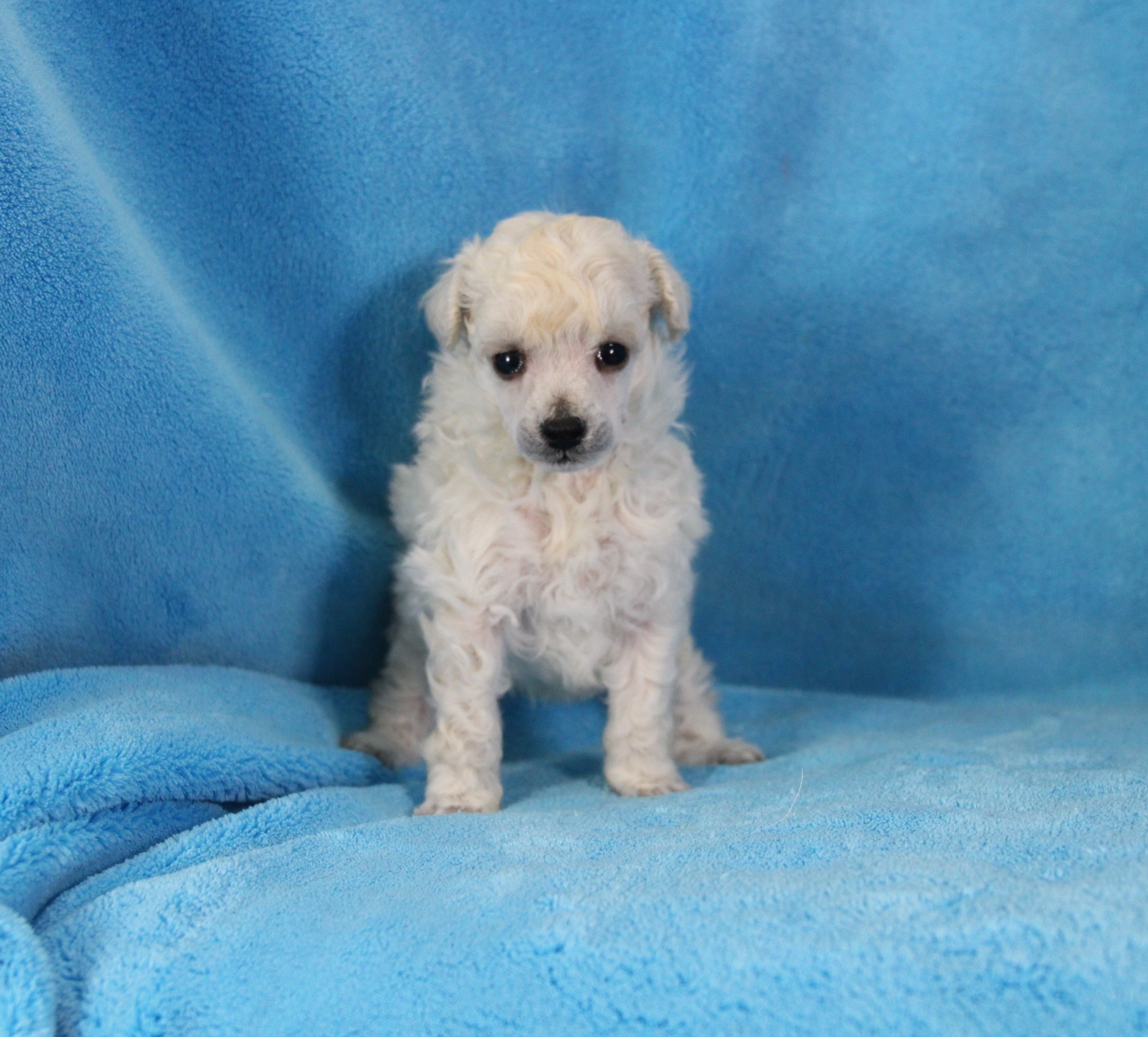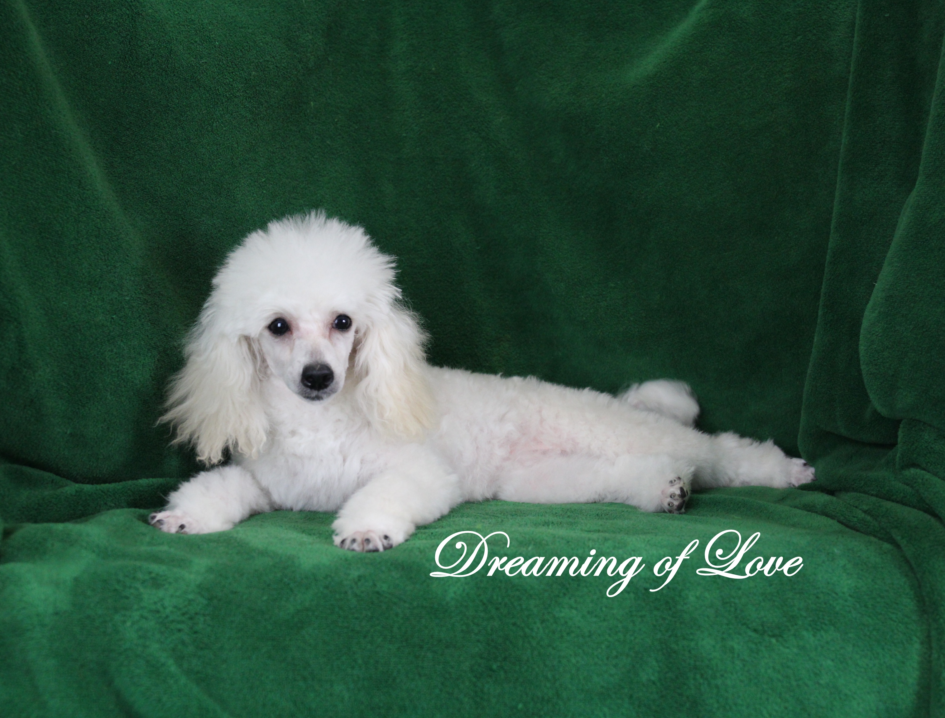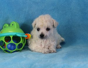 My name is Dean and I am an adorable, Toy Poodle. I’m playful, but I also like to cuddle. I promise to follow you wherever you go. I have been raised with lots of tender loving care. He is Limited Registration, for Full Registration will be $500.00more. His Daddy is AKC Champion and His PRA is normal/clear. His Mommy is AKC Champion Sired and Her PRA is normal/clear. I am AKC registered, health guaranteed and vet checked. Plus you will get his very own Puppy Book that has his care instructions, health records, parents pictures and health testing, tips for house training and pictures of him! I look forward to being a part of your family. He has also had Early Neurological Stimulation (ENS) exercises. Can’t wait to see your smiling face. Call today, I am top of the line quality. I won’t be here long.”