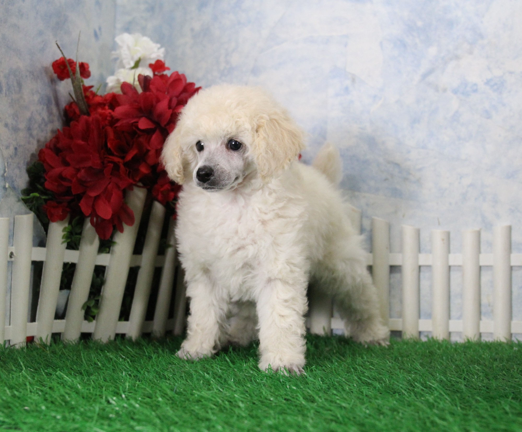 We call this lovely little AKC Toy Poodle girl Jody. What a personality she has. She is pretty and knows it! Jody prances across the floor with each step full of pride. She is a little showoff. Her gorgeous, hair-coat is lush and full. She has a darling, doll face and nice black points. She is Limited Registration for Full registration will be $500.00more. Her Daddy is AKC Champion and His PRA is normal/clear. Mommy is AKC Champion Sired. Jody is sure to win your heart with her adorable looks and wonderful disposition. She will join her new family with application for registry with the AKC, all age and size appropriate vaccinations, medical record, health examination and certification. Plus you will get her very own Puppy Book that has her care instructions, health records, parents pictures and health testing, tips for house training and pictures of her! She has also had Early Neurological Stimulation (ENS) exercises. Make her your very own today!