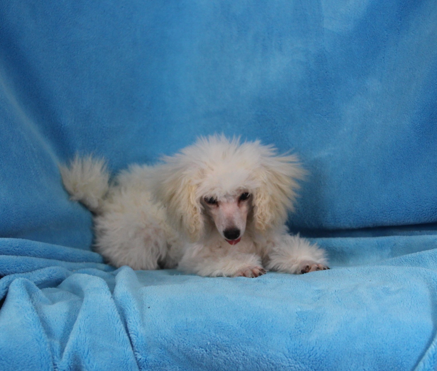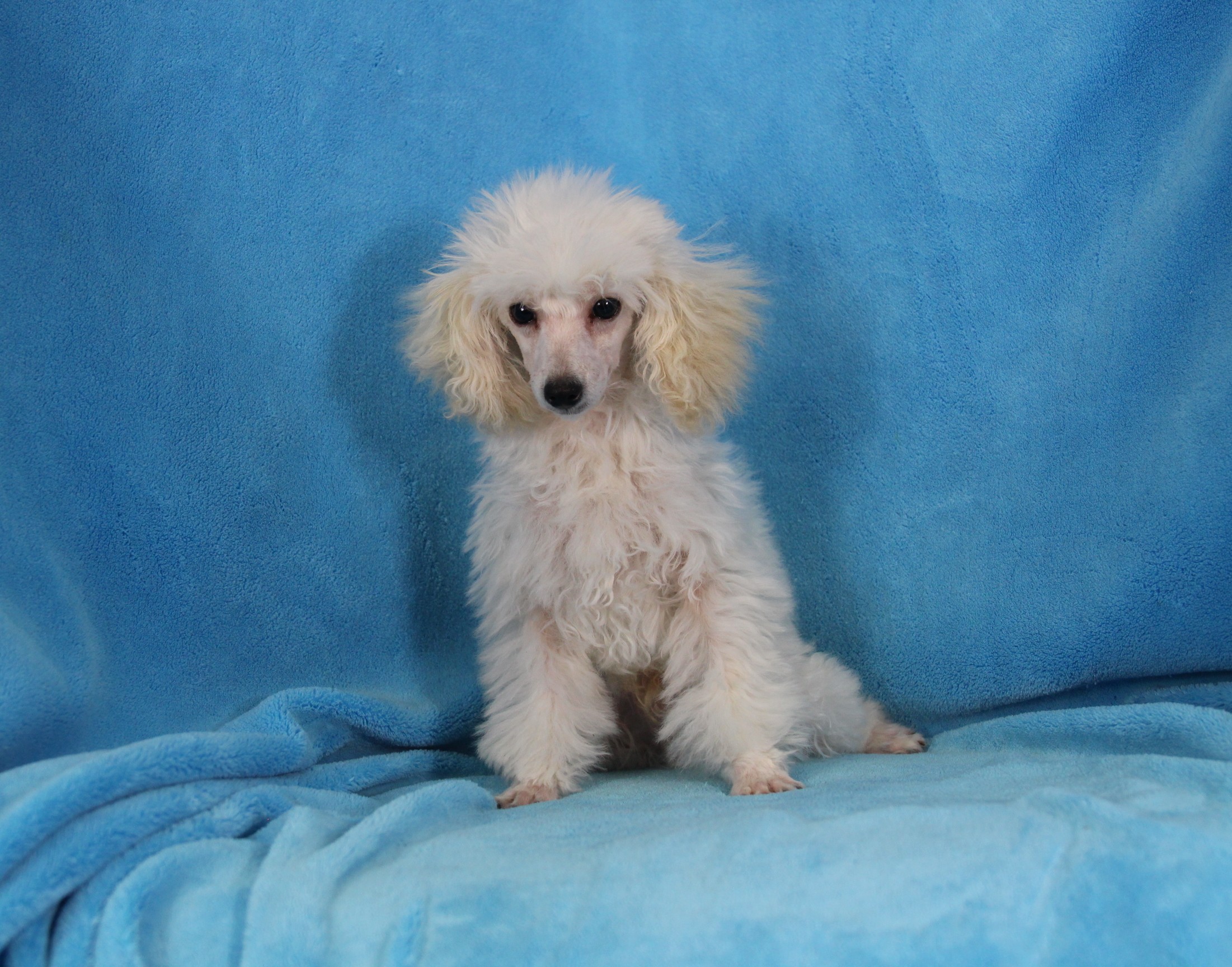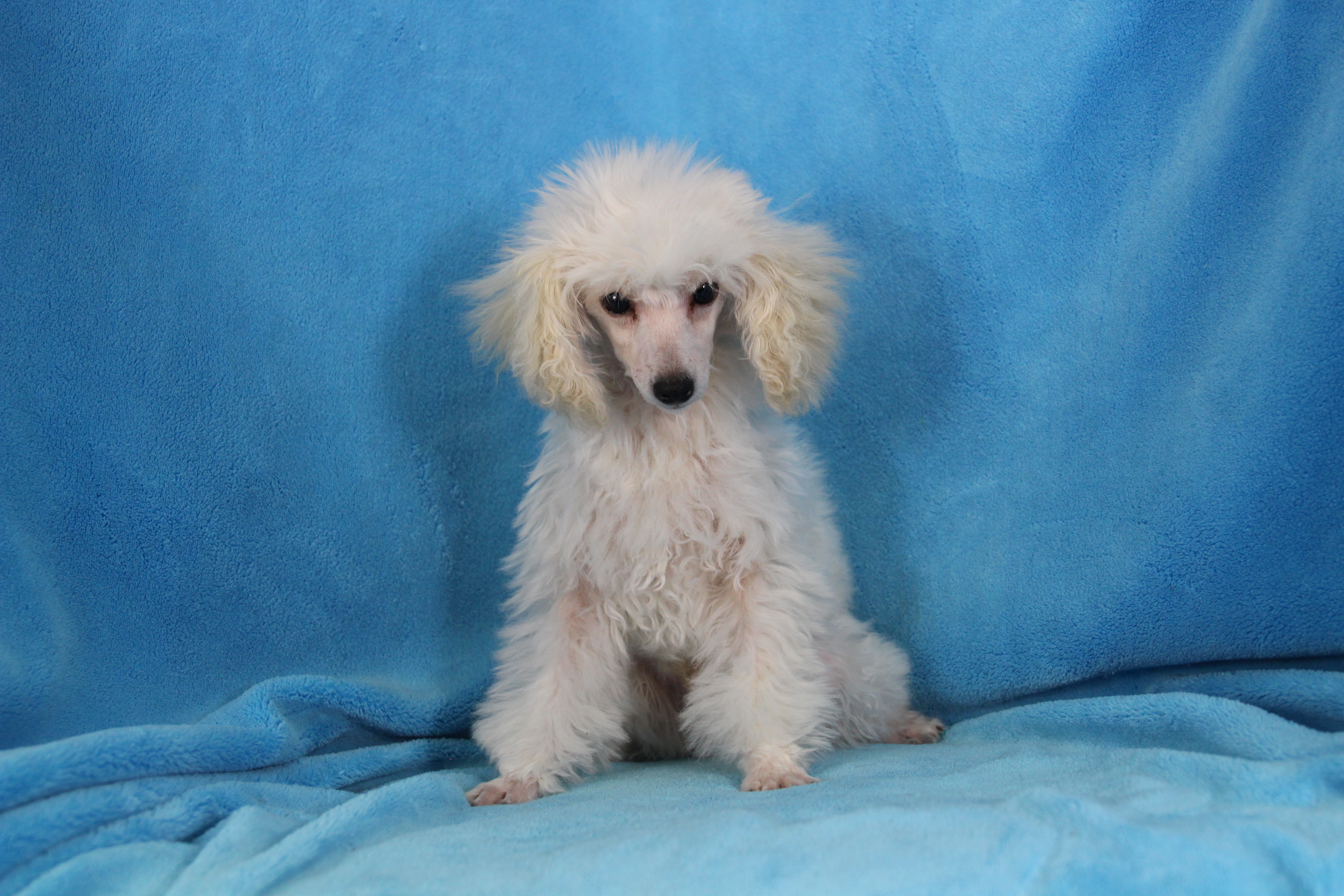 My name is Pongo and I am an adorable, Toy Poodle. I’m playful, but I also like to cuddle. I promise to follow you wherever you go. Pongo is limited Registration, for Full Registration will be $500.00 more. his Daddy is AKC Champion and his PRA is normal/clear. His Mommy PRA is normal/clear. I have been raised with lots of tender loving care. I am AKC registered, health guaranteed and vet checked. Plus you will get his very own Puppy Book that has his care instructions, health records, parents pictures and health testing, tips for house training and pictures of him! I look forward to being a part of your family. He has also had Early Neurological Stimulation (ENS) exercises. Can’t wait to see your smiling face. Call today, I am top of the line quality. I won’t be here long.”