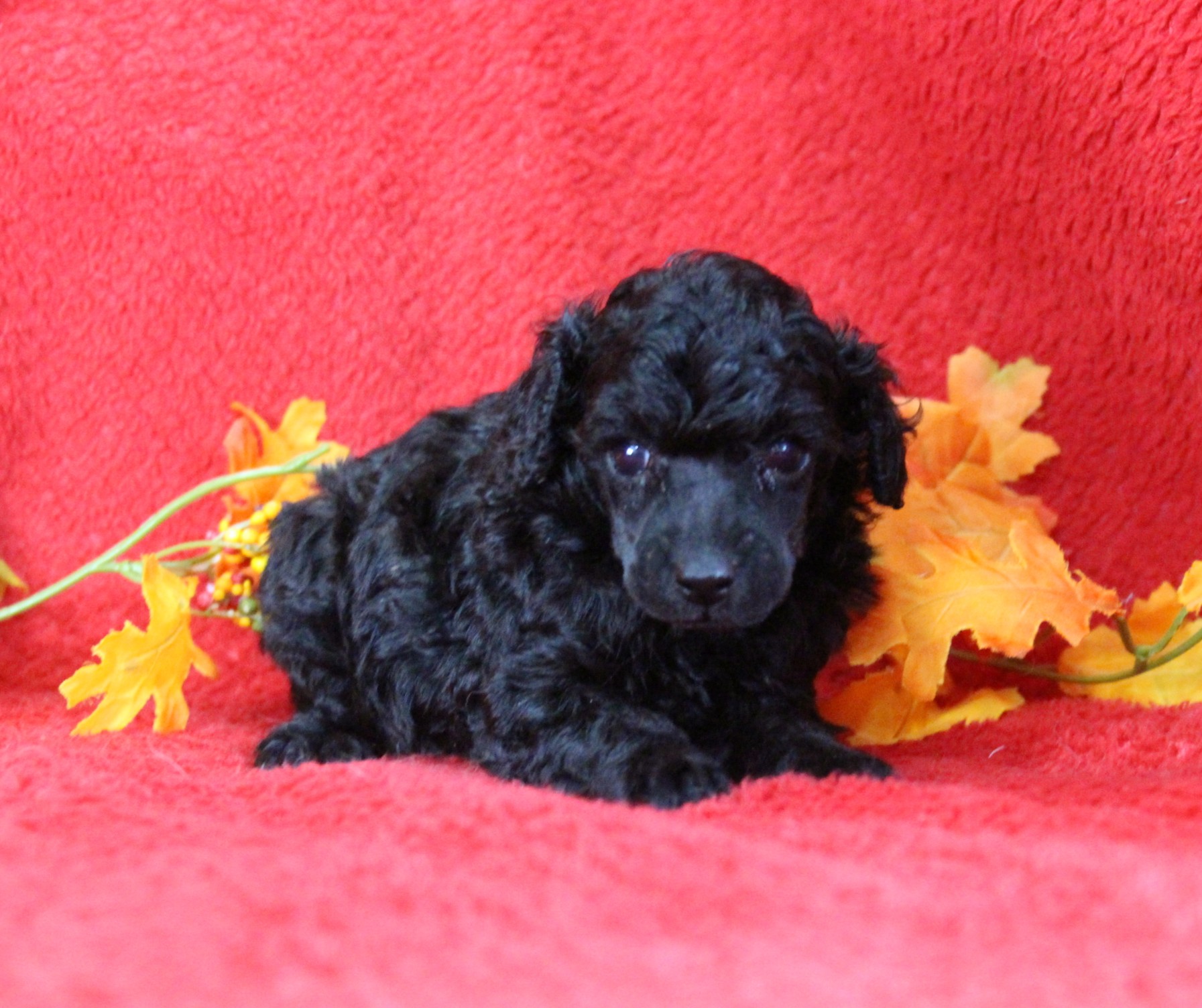 My name is Rojo and I am an adorable, Toy Poodle. I’m playful, but I also like to cuddle. I promise to follow you wherever you go. He is Limited Registration, for Full Registration will be $500.00 more. I have been raised with lots of tender loving care. His Daddy is AKC Champion and his PRA is normal/clear. His Mommy is AKC Champion Sire and her PRA is normal/clear. I am AKC registered, health guaranteed and vet checked. Plus you will get his very own Puppy Book that has his care instructions, health records, parents pictures and health testing, tips for house training and pictures of him! I look forward to being a part of your family. He has also had Early Neurological Stimulation (ENS) exercises. Can’t wait to see your smiling face. Call today, I am top of the line quality. I won’t be here long.”